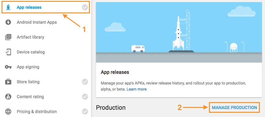 Depois acesse a sua Google Play account (https://play.google.com/apps/publish) e inicie a submissão do seu app.