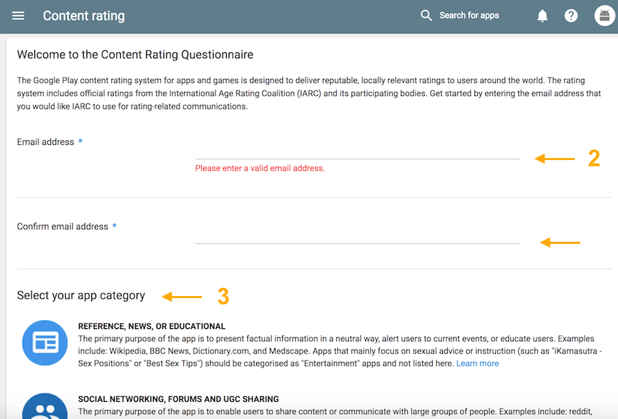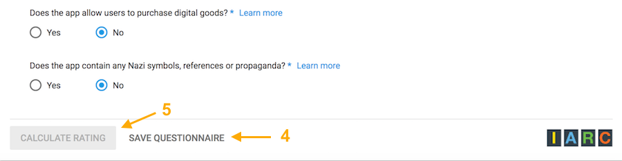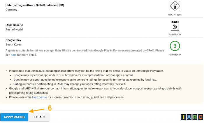 5 - Clique no botão "Calcular Classificação". A Google irá determinar a classificação do seu app conforme as suas respostas.