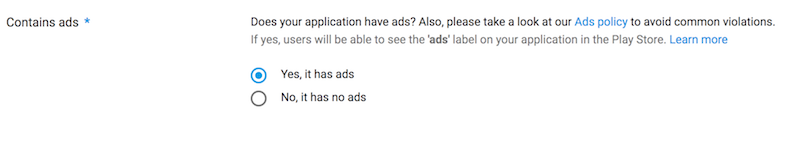 Se o seu app contém anúncios +, você deve escolher "Sim". Caso contrário, escolha "Não".