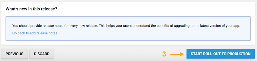 Uma janela irá aparecer na tela. Clique sobre "Gerenciamento da Versão" de maneira a iniciar o lançamento da versão do seu app. Esta ação o levará de volta ao menu Versões de apps.