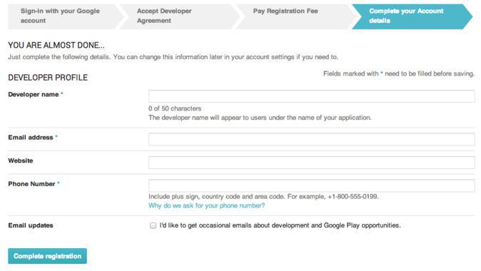 Se você deseja que o seu app seja distribuído na Play Store, é importante criar uma conta de publisher na Google Play (não é necessário se você deseja distribuir o seu app de outras formas, além da Play Store).