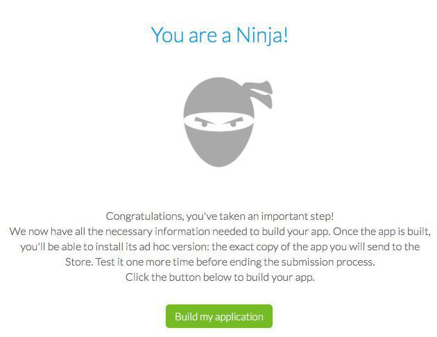 Clique em Compilar o meu aplicativo para que possa testar o app nos novos dispositivos. Uma vez terminado, você pode escolher Modificar para desbloquear o back office.