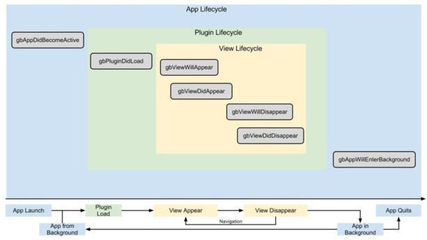 Eventos retornos de chamada são chamados por seu plugin como uma função da ações do usuário App Lifecycle e (quando o conteúdo é mostrado, quando o aplicativo entra em modo de fundo ou é recuperado do modo de fundo, etc.)