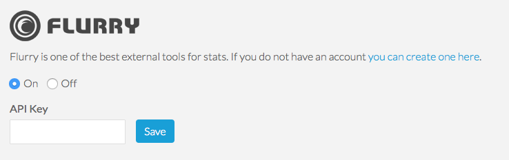 Depois, em Audiência > Estatísticas > Ferramentas Externas > Flurry dentro do back office, coloque a sua chave API no campo "API KEY", depois clique em salvar.