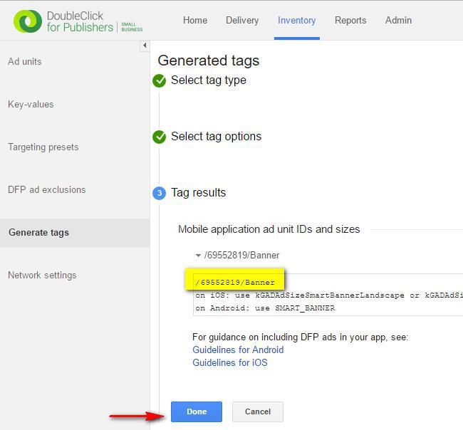 Nesta ajuda online vamos lhe explicar como ligar o seu AD Unit ID aos seus apps. Para mais detalhes sobre como gerir e criar os seus próprios anúncios na plataforma DFP, por favor consulte o DoubleClick for Publishers Help center .