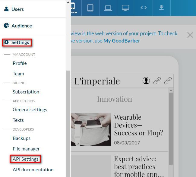 No seu back office, acesse Configurações > Programadores > Configurações API.
