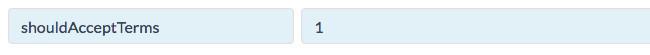 Por último, acrescente o valor = 1 na linha da propriedade shouldAcceptTerms, em seguida, salve na parte inferior da tela.
