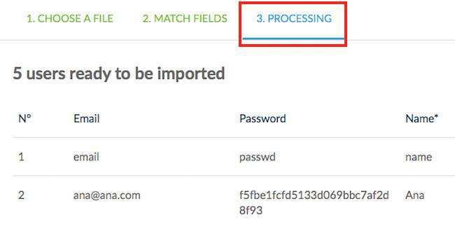 Dica: O caminho certo para importar a senha é importar uma senha neutro ("alterarsenha", por exemplo), em seguida, pedir a seus usuários a seguir o procedimento de recuperação de senha quando eles primeiro fazer login no aplicativo.