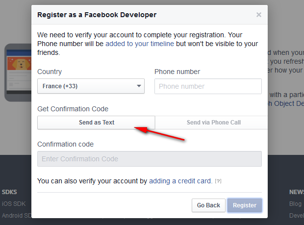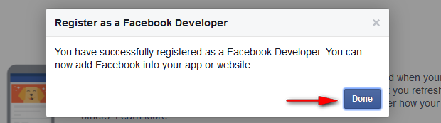 1. Vá ao portal Facebook developer e clique em "Register as a developer"