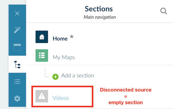 Tome especial atenção caso esteja usando conectores de conteúdo (Wordpress, Live Radio, Youtube, etc.) para garantir que estes estão devidamente configurados. Caso não estejam, a seção em causa irá exibir um sinal de aviso a cinzento.
