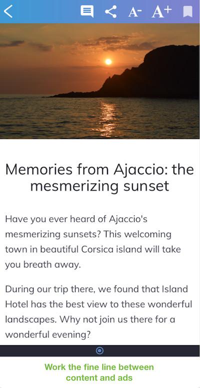 Isto pode incluir trabalhar a linha fina entre anúncios e conteúdo, criando um feed de conteúdo com a nossa funcionalidade poderosa de CMS. Isto também se aplica ao uso de anúncios dentro do app: muito embora o uso de uma rede de anúncios ofereça uma forma excelente de monetizar seu app, evite sobrecarregar seus usuários com informação.