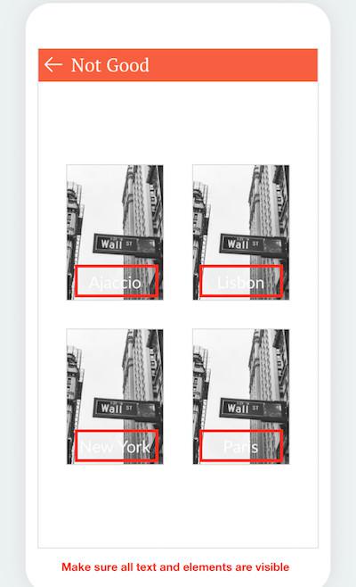 Você pretende que os seus usuários compreendam a funcionalidade do seu app com facilidade, como tal, o design do seu app deve ser claro e apropriado. É importante que não obstrua o campo visual dos seus usuários, pelo que deve evitar o uso de uma palete de cores demasiado forte ou diversa, pouco contraste, ou fontes de difícil legibilidade.