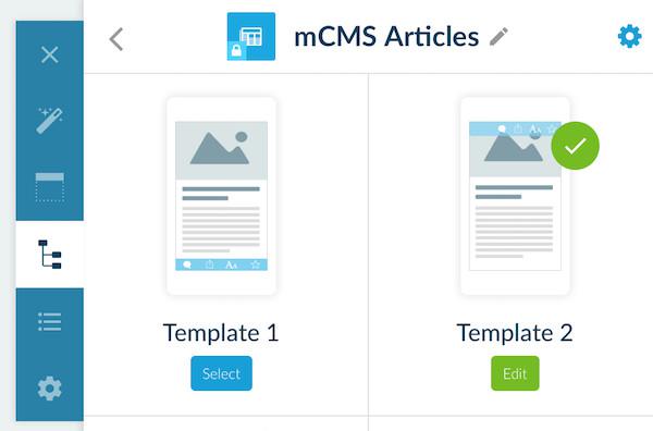 O seu template encontra-se devidamente identificado, mercado por um ícone verde. No caso das seções de artigos tem 4 templates diferentes para a página do artigo, e 9 templates para a lista de artigos.
