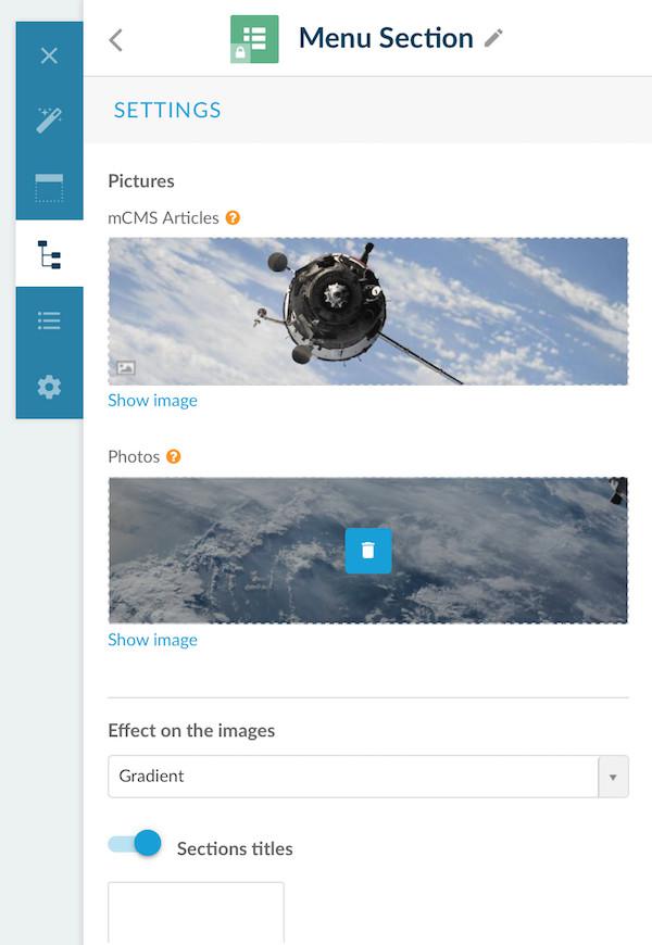 Usamos uma seção mCMS como exemplo nesta ajuda, mas as configurações disponíveis podem difere conforme o tipo de seção que está a modificar.