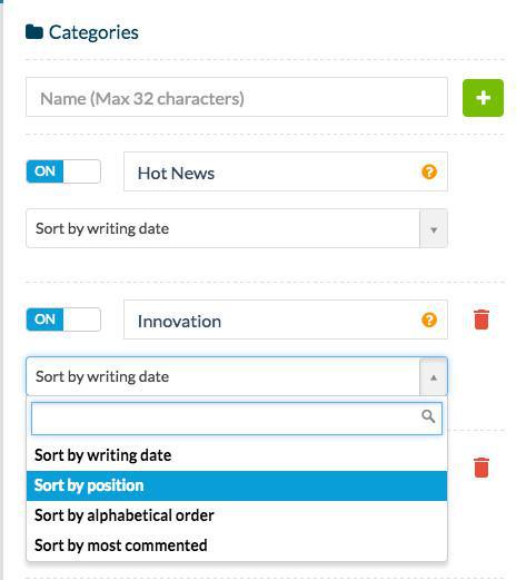Se você só precisa de uma categoria em sua seção, mas deseja classificar o conteúdo por posição, crie uma segunda categoria e escolha ocultar a primeira categoria. Não se esqueça de colocar o seu conteúdo na categoria visível antes de fazer isso!
