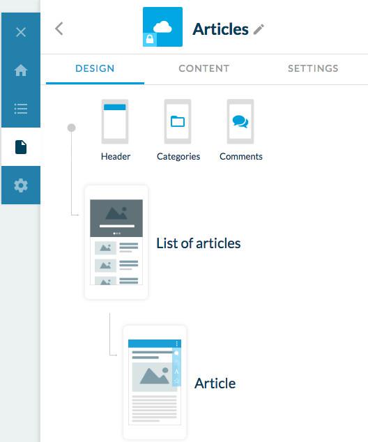 Sob o título da seção, você terá três opções para personalizar seu artigo: Design, conteúdo e configurações.