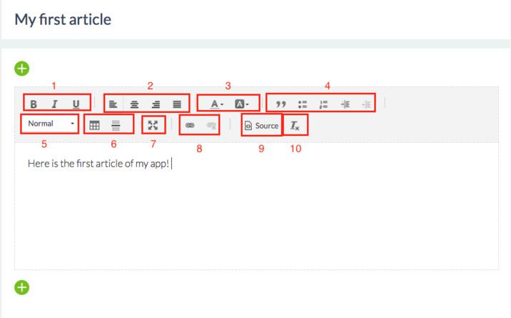 9. A fonte de ícones na barra de ferramentas permite que você digite o código HTML que será lido pelo aplicativo. Todo o parágrafo será em formato HTML.