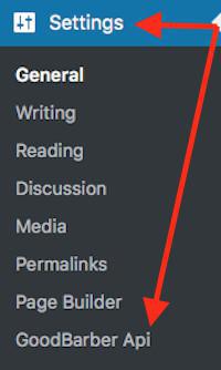 No menu lateral, clique em "Settings", depois "GoodBarber Api".