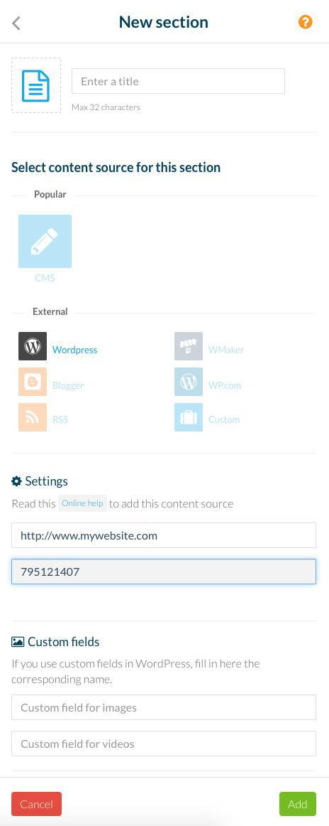 3. Adicionar uma seção WordPress no seu back office GoodBarber