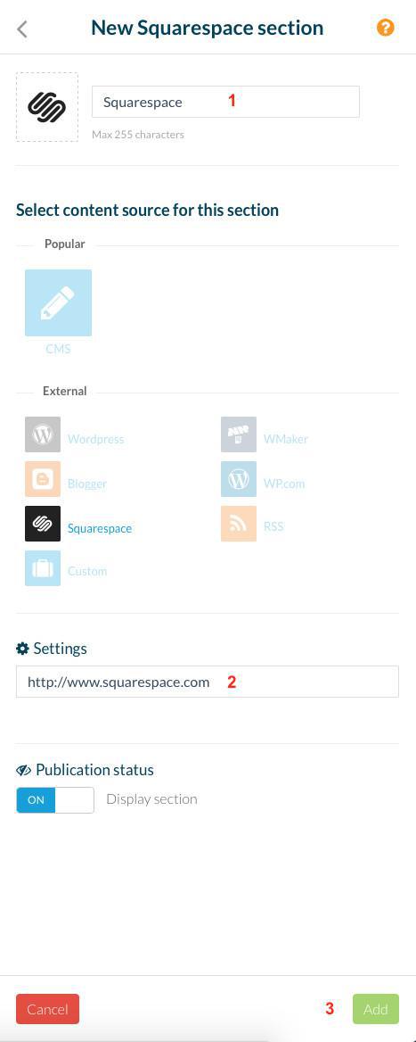 Depois nas definições preencha o URL do seu site Squarespace http://www.mywebsite.com (2).