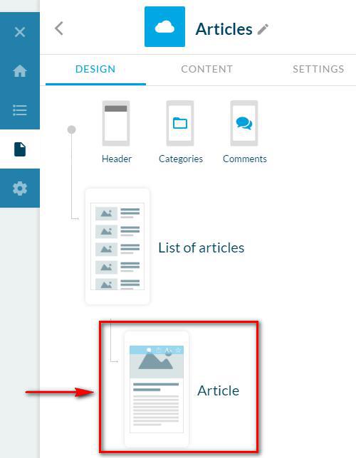 No menu Construtor > Seções, selecione a seção Artigo mCMS na lista de seções.