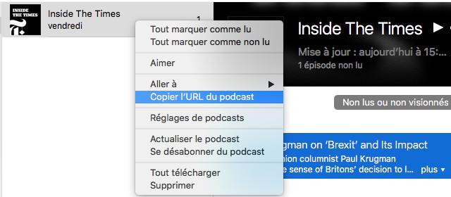 Selecione-o, clique com o botão direito sobre ele e clique em "copiar URL do podcast".