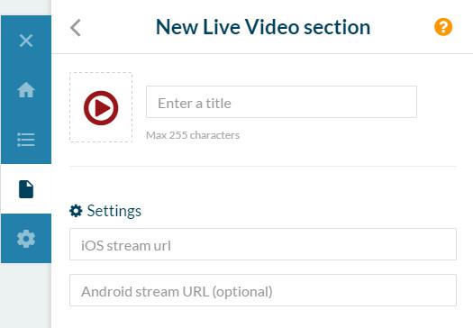 Insira a URL do seu feed de vídeo ao vivo. Você deve usar um feed de vídeo no formato streaming HTTP na seção de Live Video.