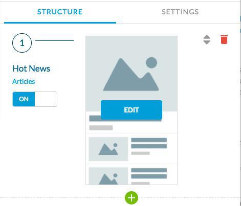 As configurações da sua home ficam acessíveis ao topo da lista de seções; esta é a primeira página a ser exibida no app, após a tela de lançamento.