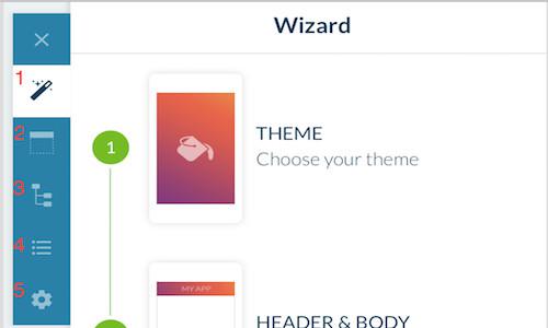 Aqui você irá encontrar as principais funcionalidades que devem ser configuradas de modo que o app esteja apto para publicação. Nesta seção pode acompanhar as ações que já completou (os números na lateral ficarão marcados a verde) ou que ainda faltam ser configurados. O assistente funciona como uma ferramenta sistemática e útil para manter uma visão geral das principais componentes do app e assim permitir a você criar um beautiful app.
