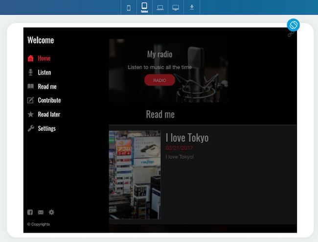 Pode escolher em que dispositivo deseja pré-visualizar o seu app na barra azul ao topo do seu back office.