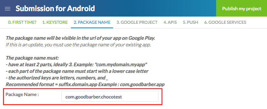 2. Package name (ATENÇÃO: ele será exibido no URL do seu app na Google Play)