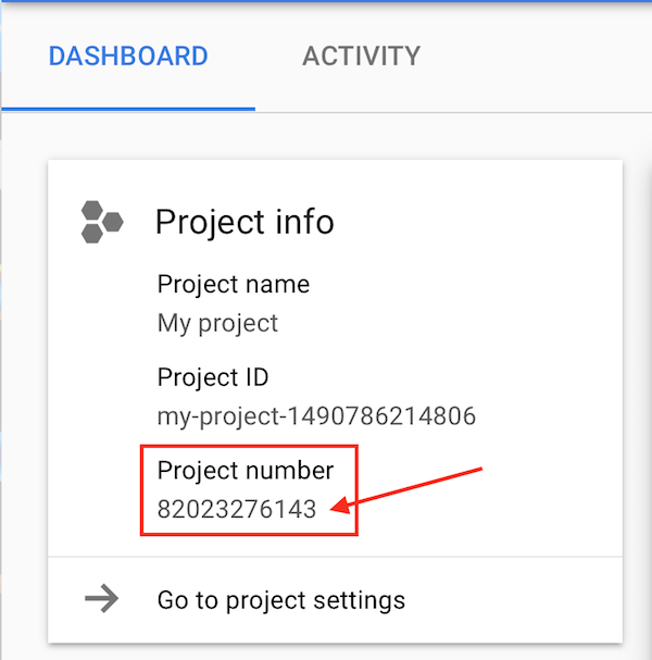 Na página que aparece em seguida, tome nota do número do seu projeto. Ela é exibido no topo da página.