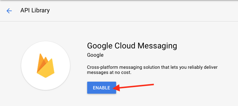 A ativação do Firebase irá automaticamente ativar a API do Google Cloud Messaging