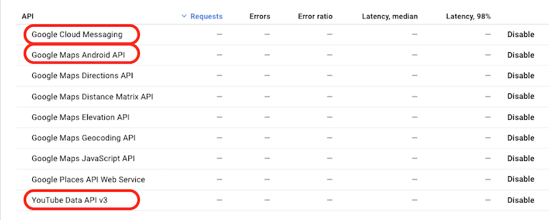 Cique no botão "Ativar APIs", então ative os seguintes serviços"