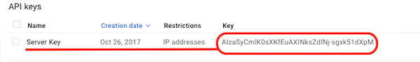 1: Edite o nome para Server Key (o nome original é provavelmente API KEY 1)