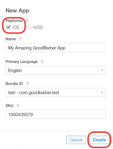 Nesta fase, você tem que selecionar a caixa de iOS em plataformas e em seguida, preencha: