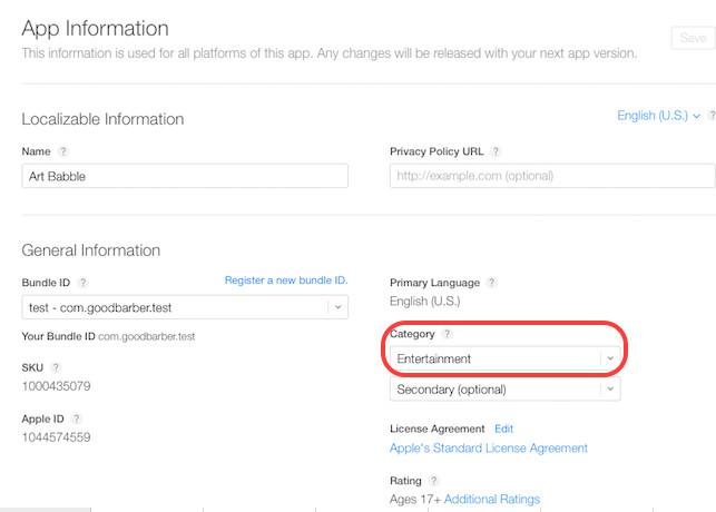 - Category (primária): A categoria em que seu aplicativo será publicado na App Store