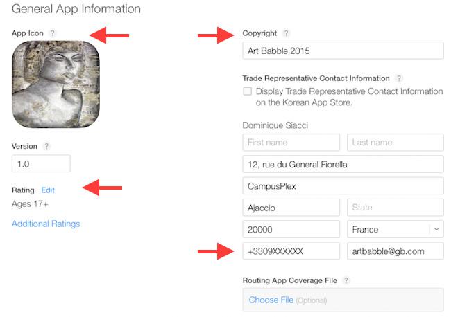 Preencha estas informações referentes ao seu app na loja. Atenção especial ao número de telefone, adicione o código do país e certifique-se que se o telefone inclui um sinal "+", não esqueça de adicioná-lo.