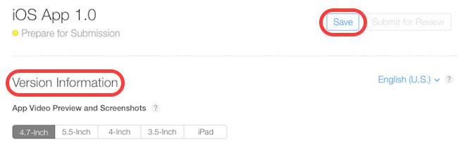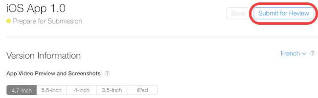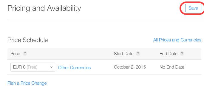 Salve as alterações e clique em "Submit for review" no canto superior direito da tela. Se você estiver na página Pricing and Availability, volte para a página do seu aplicativo iOS para encontrar o botão "Submit for review".